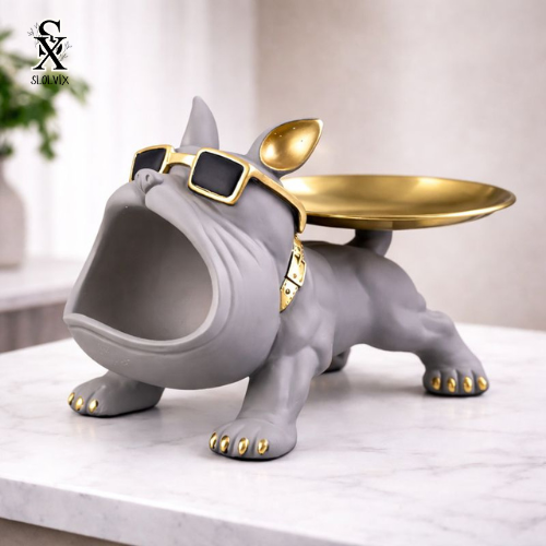 🐶 פיגורת בולדוג יוקרתית לעיצוב הבית + קופסת אחסון (רזין)